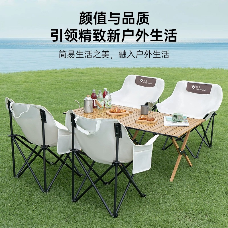 鹿营佳户外折叠椅露营椅子便携月亮椅钓鱼凳野餐桌椅套装露营装备