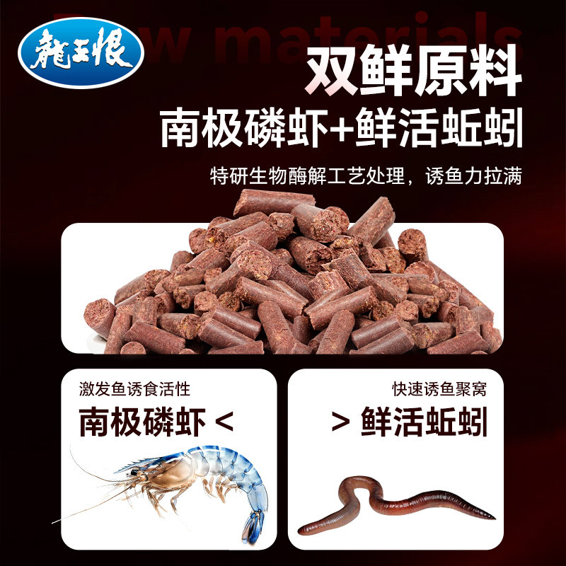 天猫龙王恨磷虾蚯蚓颗粒窝料钓鱼饵料野钓鲫鱼鲤鱼打窝颗粒底窝1kg装
