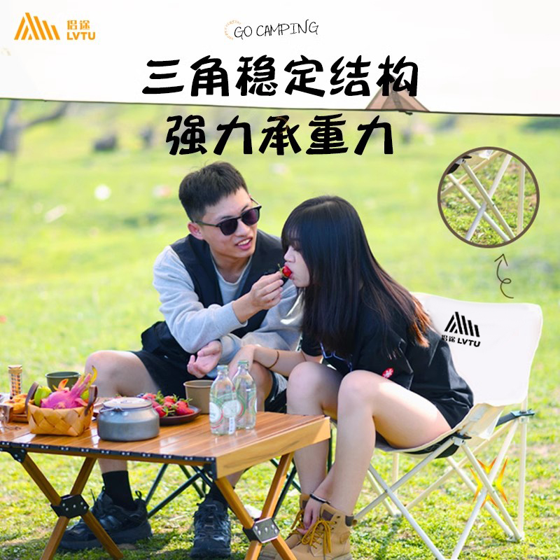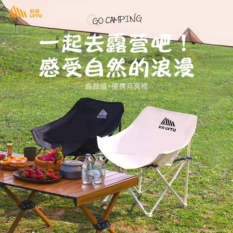 探砾月亮椅便携露营椅户外折叠椅沙滩椅钓鱼椅懒人靠背椅野餐桌椅