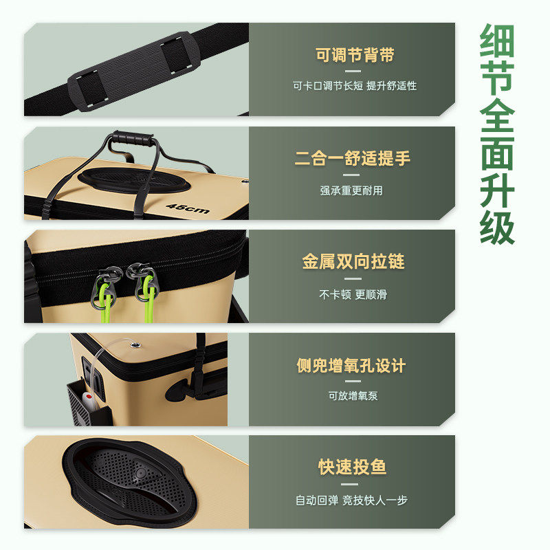 新款活鱼桶折叠可手提加厚多功能鱼箱钓鱼包渔具收纳包装备鱼竿包