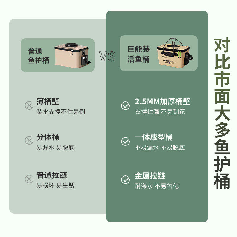 渔之源钓箱鱼箱装鱼桶加厚鱼护桶多功能钓鱼桶活鱼桶折叠渔具包