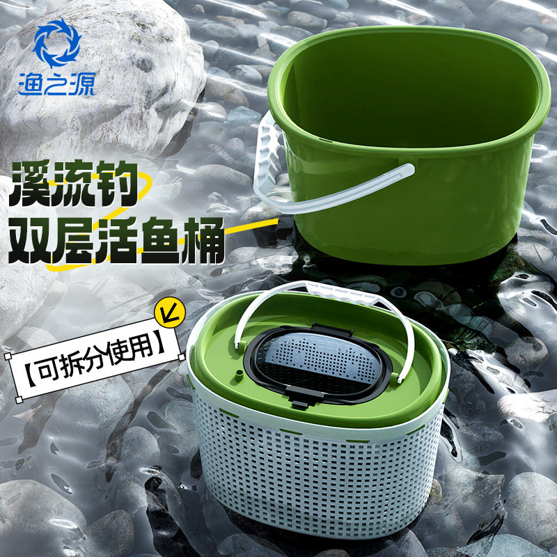 天猫渔之源溪流活鱼桶钓鱼桶一体成型装鱼桶打水桶野钓专用新型鱼箱