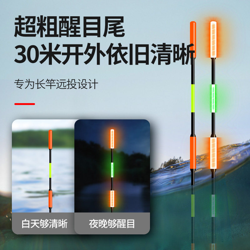 川泽一体夜光漂咬钩变色浮漂高灵敏醒目电子漂日夜两用鲫鱼鲤鱼漂
