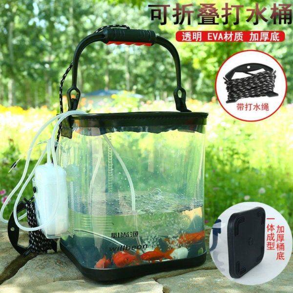 淘宝追梦路亚透明钓鱼桶钓鱼箱厚底折叠钓鱼桶EVA打水桶钓箱洗车桶