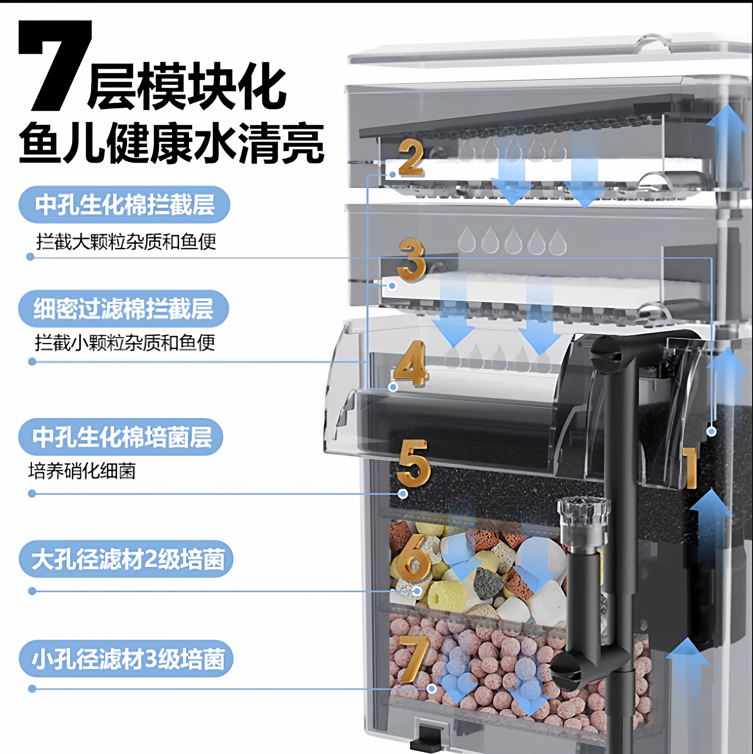 天鱼缸过滤器制氧过滤一体机三格雨淋上滤壁挂式循环三合一净水增氧