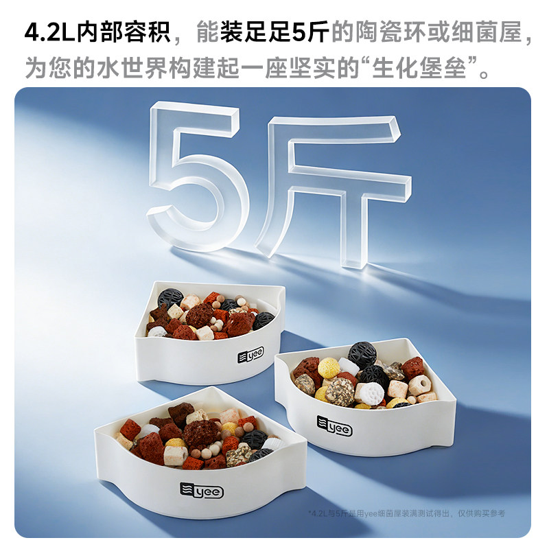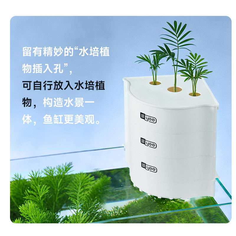 Yee鱼缸转角过滤器是一款集净水、循环、制氧于一体的高效三合一水泵设备,专为中小型鱼缸设计。采用上置滴流盒结构,有效提升水体与空气接触面积,增强溶氧量,同时通过多层过滤系统(物理、生化、化学过滤)深度净化水质,保持水体清澈透明。其独特的转角安装设计,节省缸内空间,适配多种鱼缸布局。内置静音水泵,运行平稳低噪,兼顾节能与高效。操作简单,维护便捷,特别适合新手和追求高效过滤的鱼友。Yee过滤器不仅提升观赏体验,更为鱼类提供健康、稳定的生存环境,是现代水族养护的理想选择。