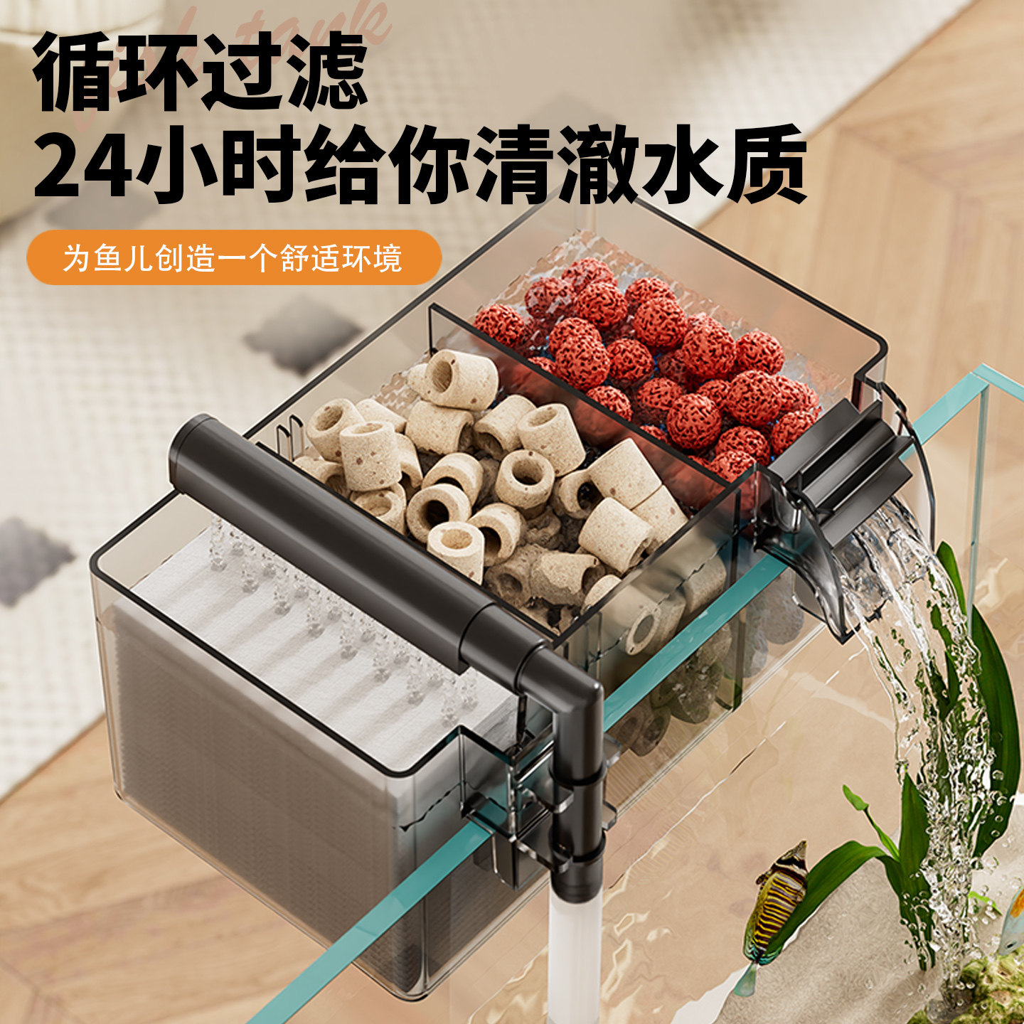 天猫鱼缸过滤器制氧过滤一体机三格雨淋上滤壁挂式循环三合一净水增氧