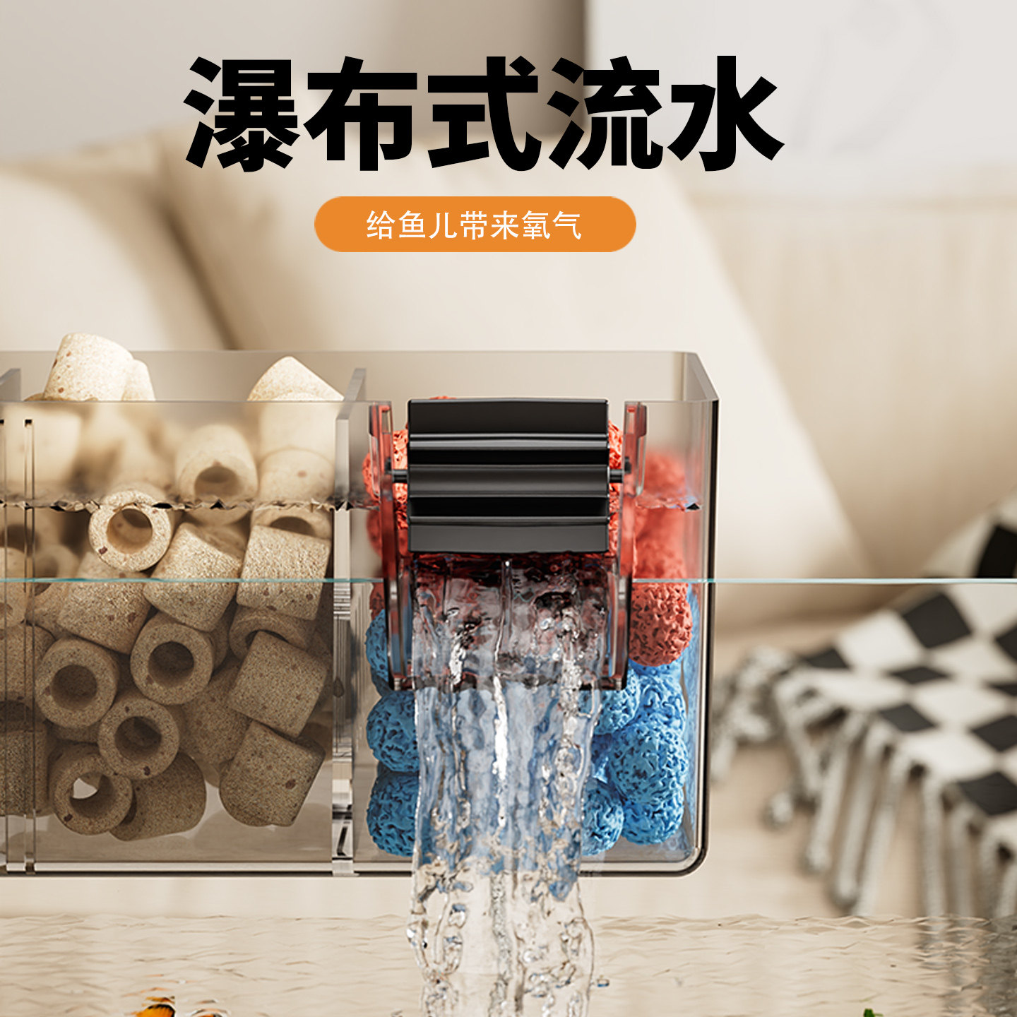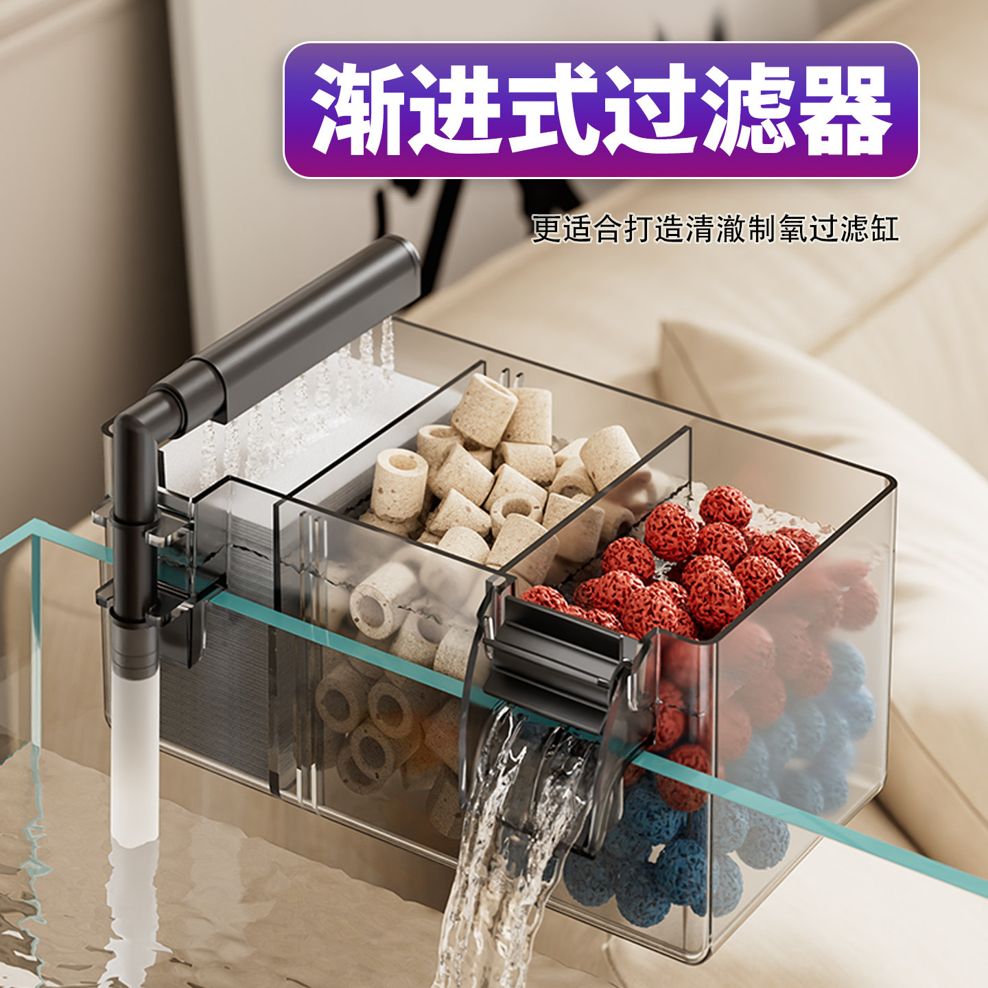 鱼缸过滤器制氧过滤一体机三格雨淋上滤壁挂式循环三合一净水增氧设备,集过滤、增氧、循环于一体,专为中小型鱼缸设计。采用三格分层过滤系统,搭配雨淋式出水设计,有效提升水流均匀性与溶氧量,增强硝化细菌繁殖,实现高效净水。壁挂式安装节省空间,操作简单,运行安静。内置气泵增氧装置,持续为水体补充氧气,保障鱼类健康生长。适用于淡水及小型海水观赏鱼缸,兼具美观与实用性,是提升水质、维护生态平衡的理想选择,让爱鱼在清澈富氧的环境中自由畅游。