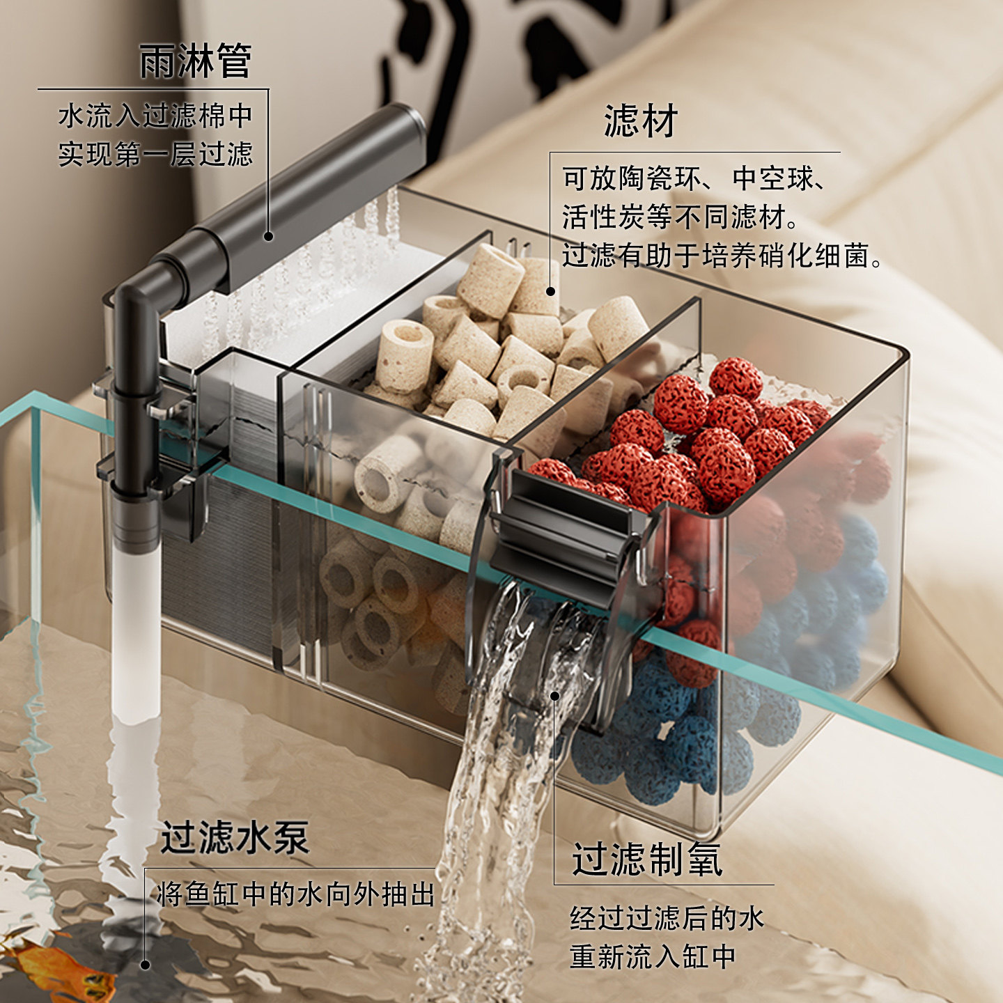 鱼缸上置过滤器净水循环三合一水泵滴流盒鱼缸制氧一体机上滤盒