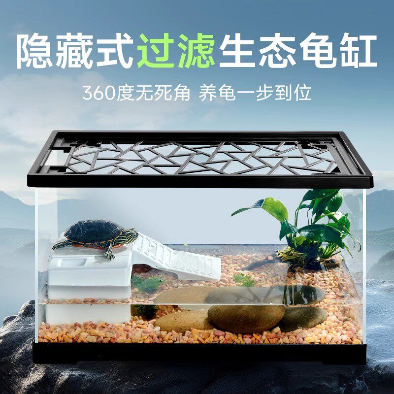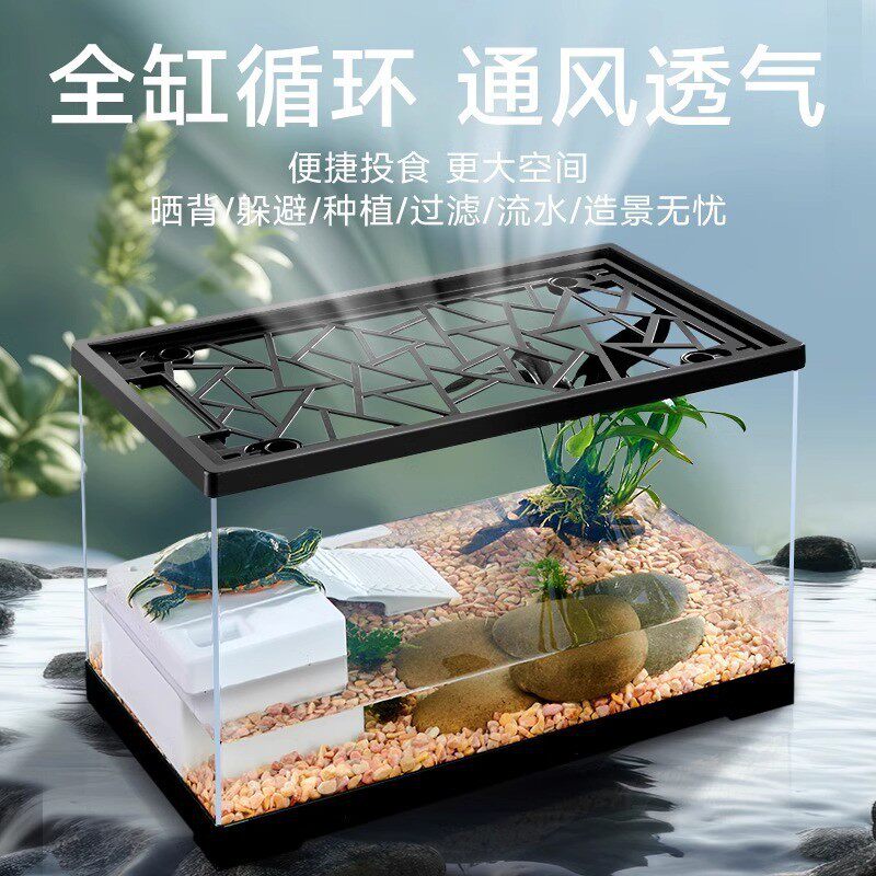 乌龟缸家用防逃逸带爬台懒人养龟水族箱小型乌龟冬眠缸乌龟饲养缸