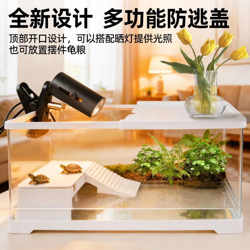 淘乌龟专用饲养缸家用儿童提手龟箱小型盒子生态盆巴西龟带晒台造景