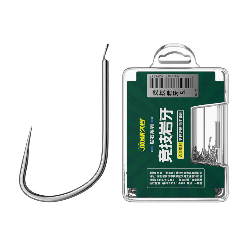 天猫久岩狼角竞技岩牙散钩100枚正钓飞磕升级合金钢钓鱼散装无刺鱼钩