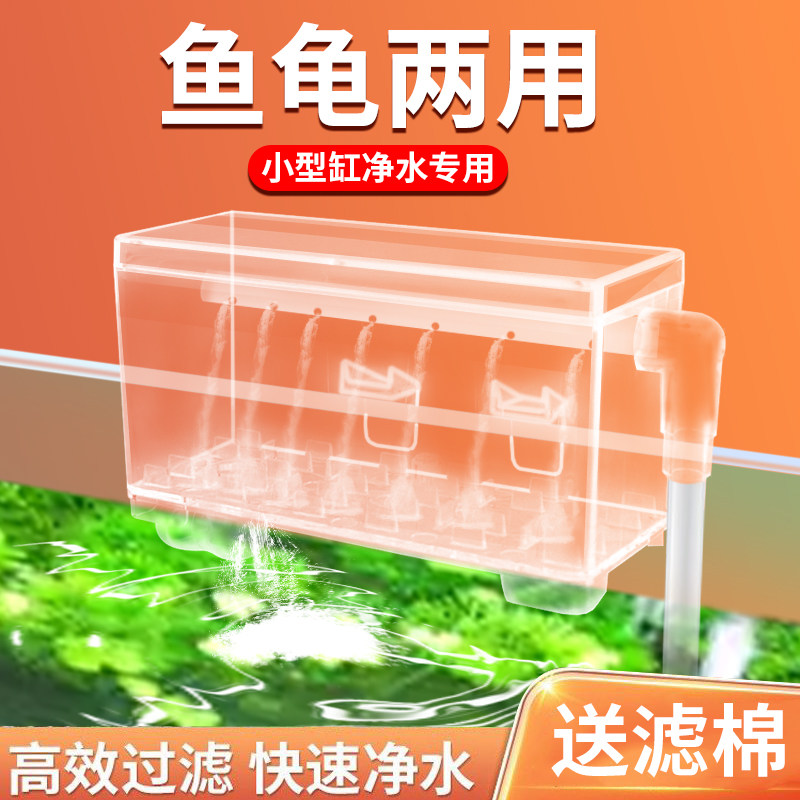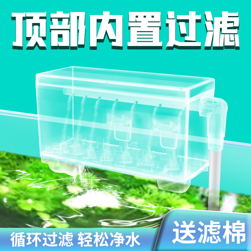淘宝小鱼缸滴流盒过滤盒壁挂式鱼缸过滤器乌龟缸玻璃上滤透明循环水泵