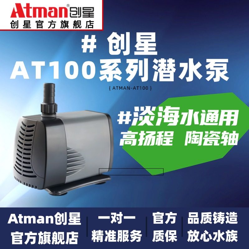 创星潜水泵AT100是一款专为鱼缸、水族箱设计的高效循环抽水设备,由知名品牌ATMAN推出。该水泵采用优质静音电机,运行平稳低噪,营造宁静舒适的观赏环境。具备大流量输出能力,可高效实现水体循环、增氧及换水功能,有效保持水质清洁。适用于淡水、海水等多种环境,广泛用于家庭鱼缸、小型水族箱及庭院喷泉系统。其紧凑设计便于安装,防水性能优异,安全可靠。AT100兼顾强劲动力与节能省电,是提升水族生态健康与美观的理想选择,深受水族爱好者信赖。