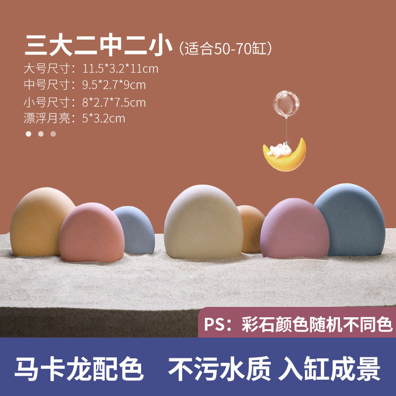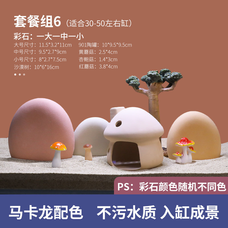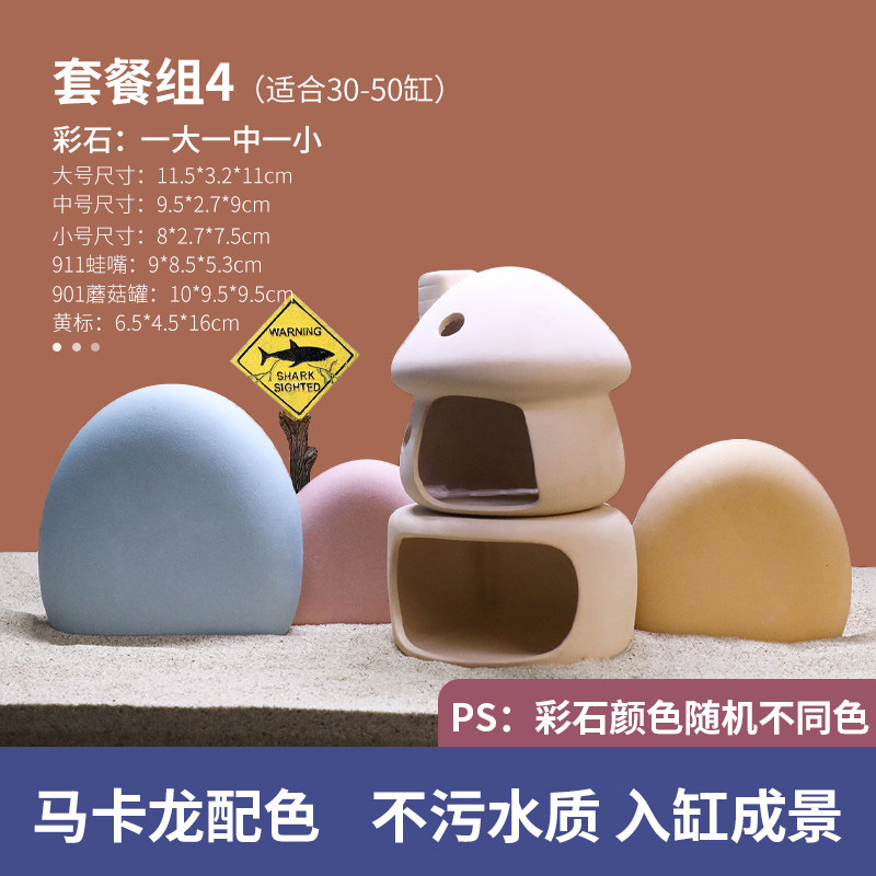天猫鱼缸造景陶罐仿真彩色石头彩石躲避屋小型装饰陶瓷摆件全套餐组合