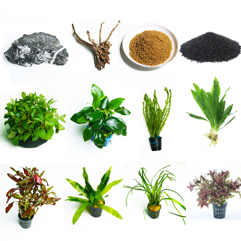 淘宝鱼缸水草植物真草造景套餐阴性增氧趴地矮珍珠活水榕沉木造景石头