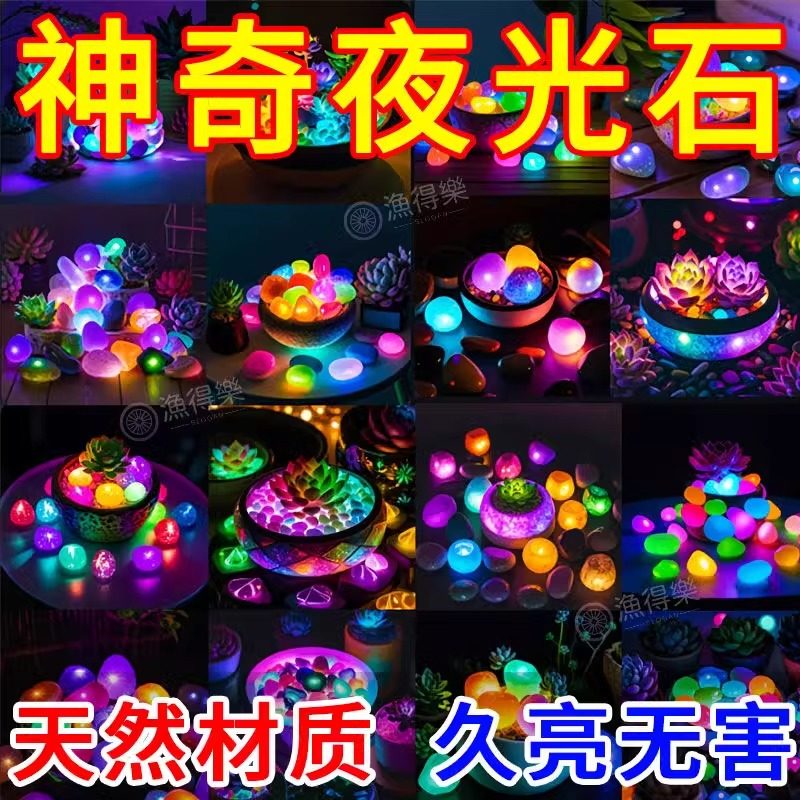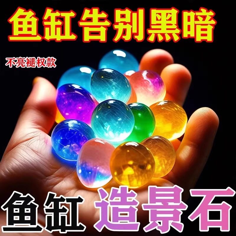 淘宝夜光石鱼缸造景发光石头鱼缸装饰饰品水族箱彩色石头布景鹅卵石