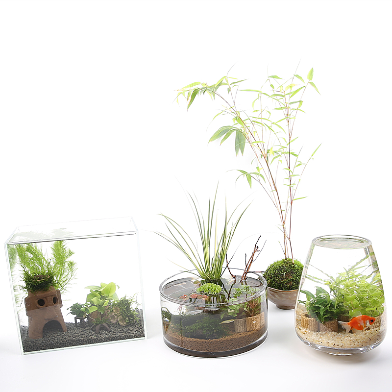 天鱼缸活体水草植物真草水培蜈蚣装饰阴性净化水火山石生态造景全套