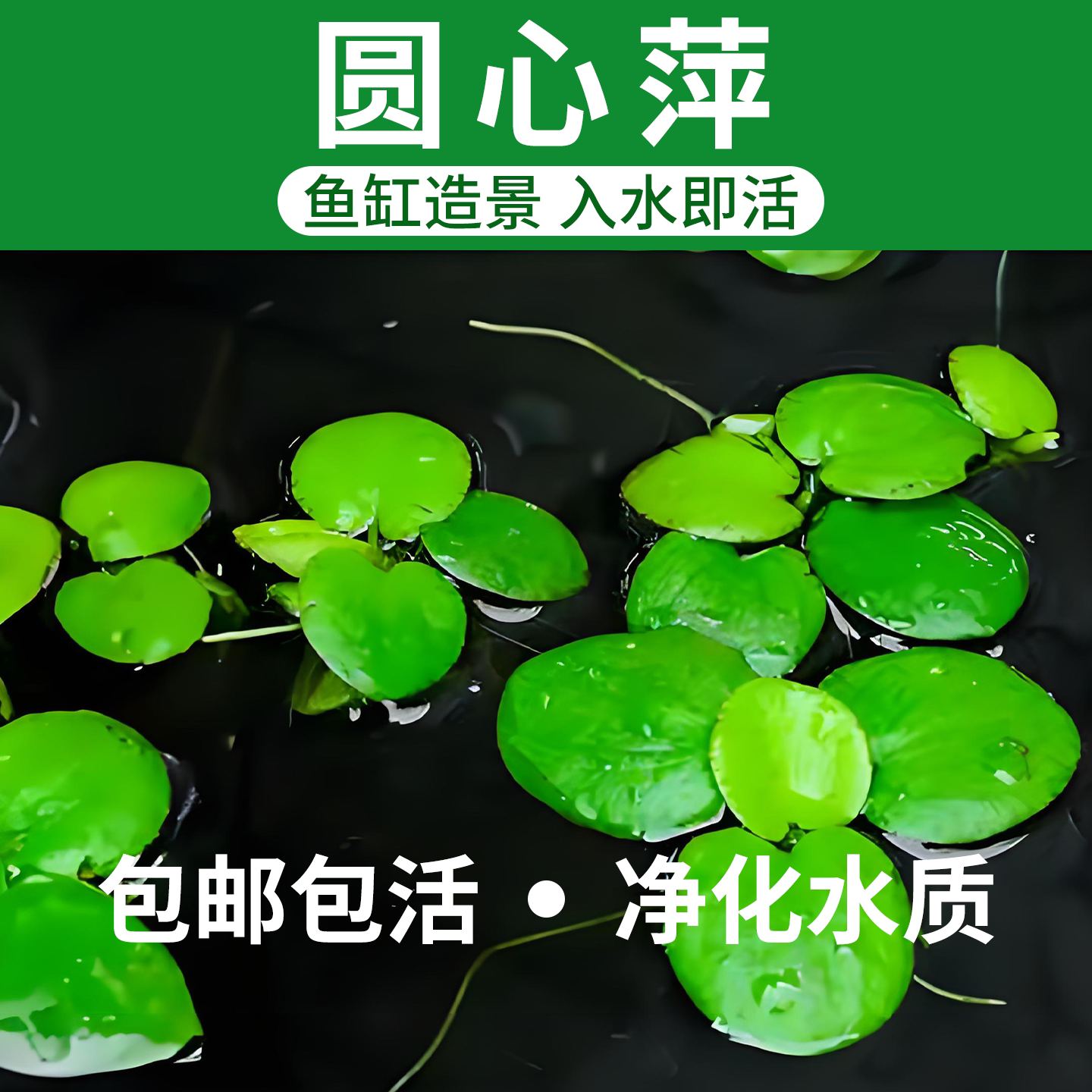 淘圆心萍浮萍一叶莲水芙蓉水草植物净化水质水培绿植鱼龟缸造景增氧