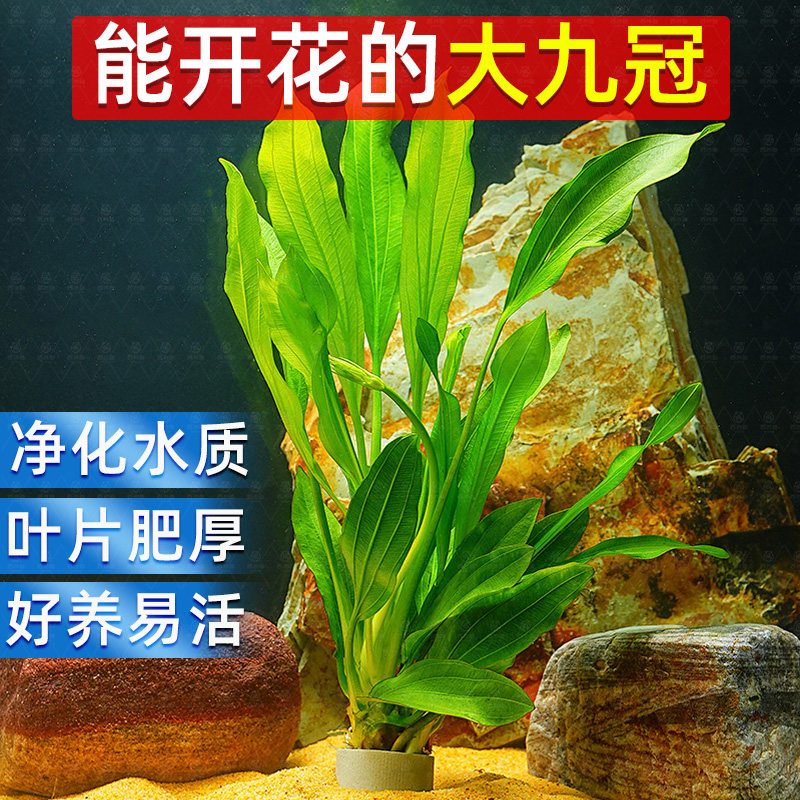 天猫皇冠水草迷你九冠大叶绿九冠鱼缸水草植物阴性新手懒人造景真草
