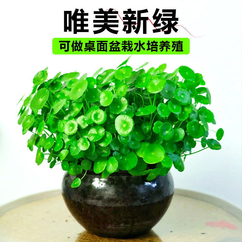 铜钱草是水族造景中极受欢迎的挺水植物,常用于古法缸、水草缸及水培装饰。其圆形叶片翠绿如铜钱,寓意吉祥,不仅美观,还能有效吸收水中氨氮、亚硝酸盐等有害物质,净化水质,为鱼类提供健康的栖息环境。铜钱草适应性强,既可完全水培,也可半水半土种植,生长迅速,根系发达,有助于抑制藻类滋生。在古法生态缸中,它能与鱼类形成良性循环,提升水体含氧量,营造自然和谐的微型生态系统。无论是新手还是资深玩家,铜钱草都是兼具观赏性与功能性的理想选择,让鱼缸更显生机盎然。