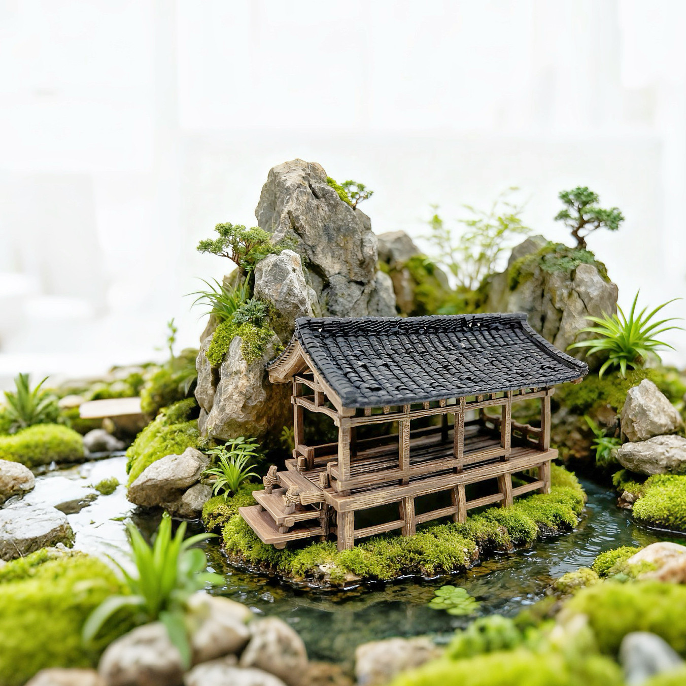 淘宝鱼缸造景盆景凉亭中式古建筑3D打印微景观水陆缸小摆件房子模型