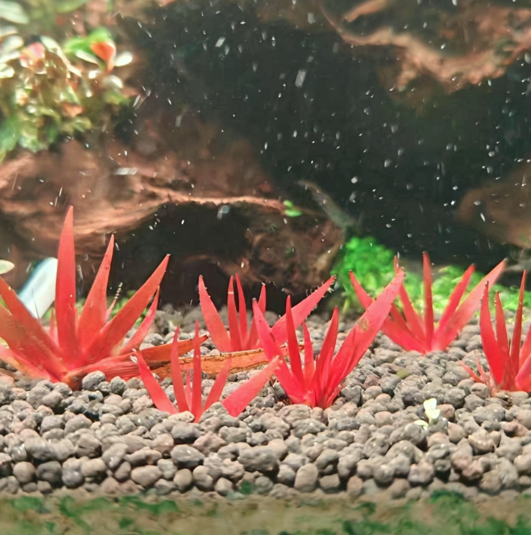 美国红扇水草(学名:*Didiplis diandra*),又称古精或谷精,是一种高端稀有的淡水水族造景植物,原产于北美湿地。其水下叶呈纤细羽状,生长迅速,在强光与充足二氧化碳条件下,叶片会呈现迷人的红褐色,宛如水中红扇,极具观赏价值。常用于荷兰式水草缸造景,作为中前景焦点植物,能提升整体层次与色彩对比。红扇水草兼具净化水质与增氧功能,有助于维持水体生态平衡。因其对水质、光照及营养要求较高,被视为进阶玩家的首选,是打造精品草缸不可或缺的珍稀品种。