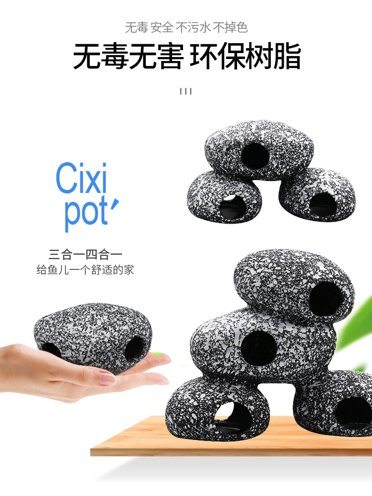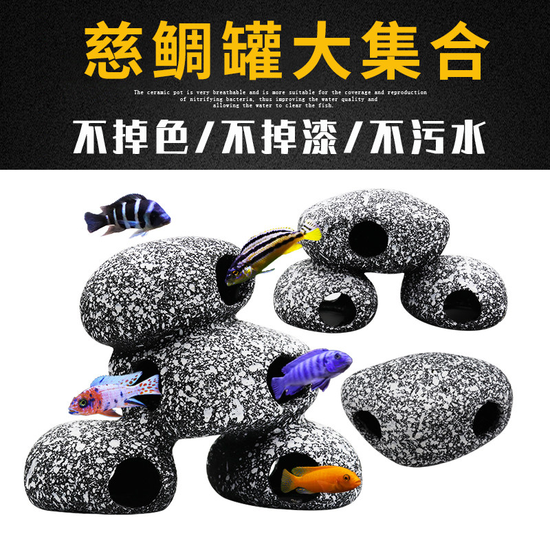淘宝鱼虾屋繁殖罐慈鲷石头短鲷躲避屋仿真陶罐鱼缸造景三湖水族石景
