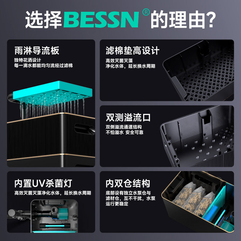 天猫BESSN贝森滤舱鱼缸过滤器净水循环系统干湿分离鱼池杀菌过滤设备