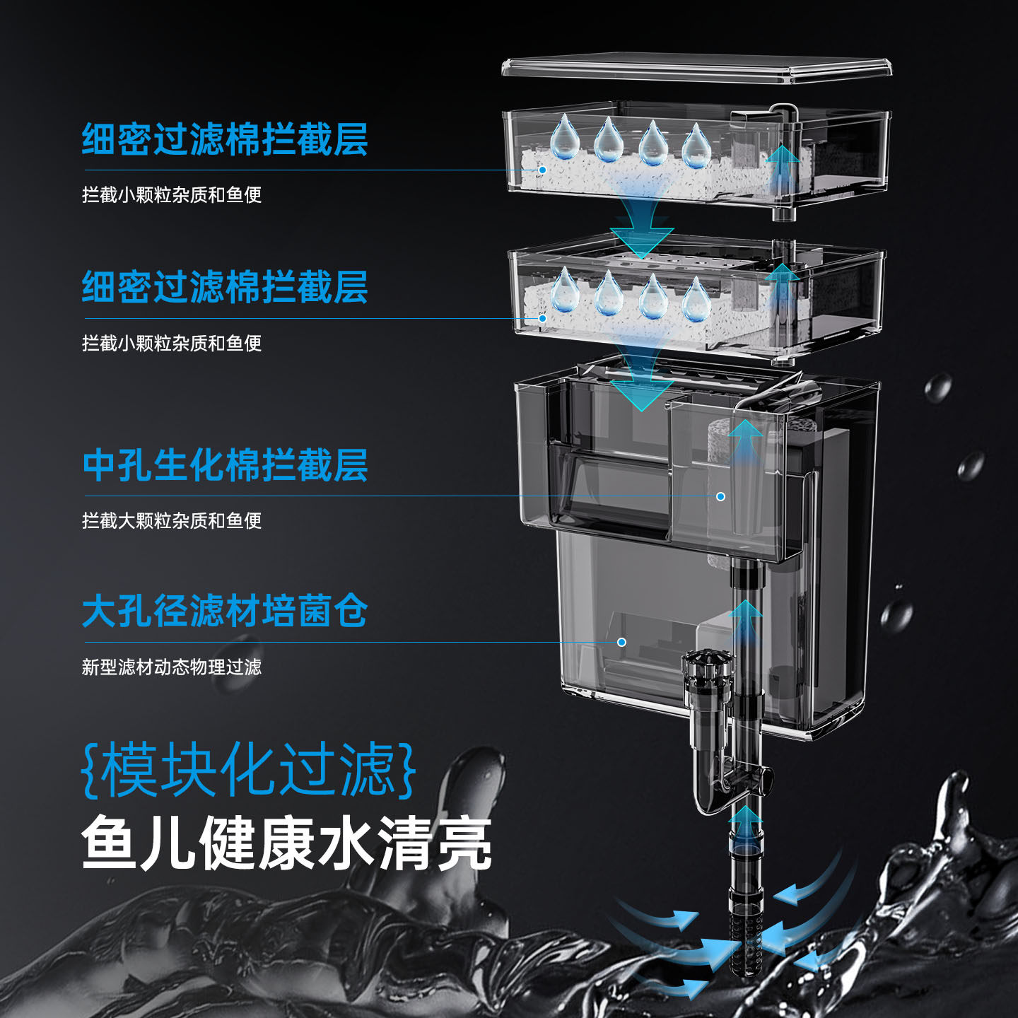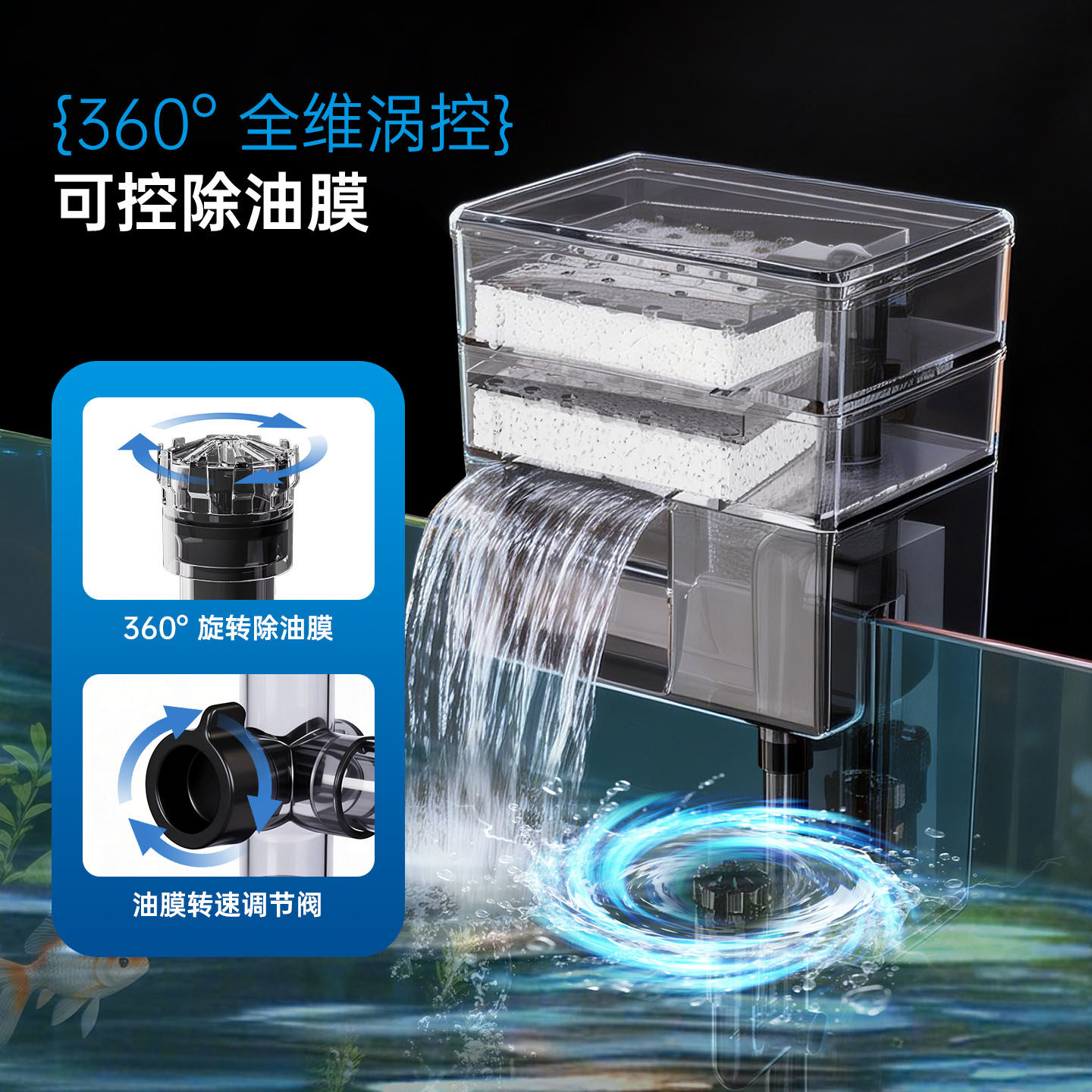 新款瀑布式XP-006/007鱼缸过滤器专为小型鱼缸设计,采用高效滴流过滤技术,实现物理、生物双重净化,有效去除杂质与油膜,保持水质清澈。内置多层过滤棉与生化滤材,培养有益菌群,提升过滤效率。独特瀑布式出水设计,不仅增强水体循环,还显著增加溶氧量,促进鱼类健康生长。运行静音,低功率电机确保安静环境,适合卧室、书房等安静场所。安装简便,拆卸清洗方便,维护轻松。适用于30-60升小型鱼缸,是提升观赏鱼生活品质的优选配件,兼顾美观与实用,为爱鱼打造洁净、富氧的水环境。