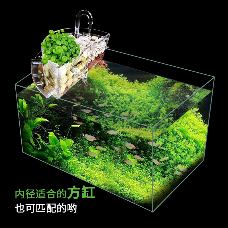 淘宝圆形鱼缸过滤器小型玻璃荷花缸上置三合一瀑布静音干湿分离滴流盒