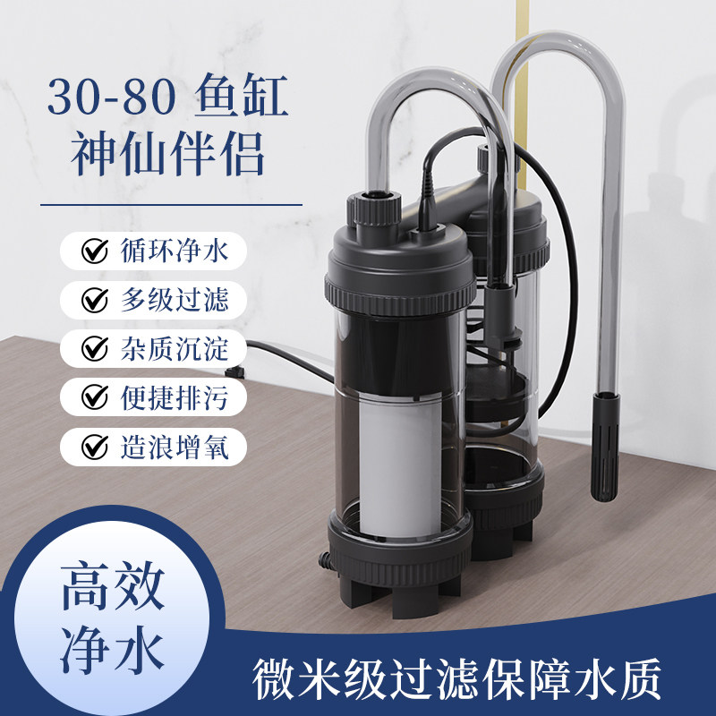 天猫鳞语四季鱼缸过滤器制氧过滤一体机净水循环三合一水泵壁挂鱼马桶
