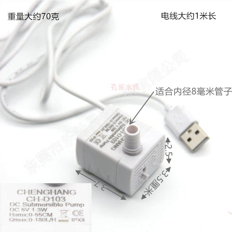 这款USB水泵迷你鱼缸静音微型无刷工艺流水宠物饮水器,集多功能于一体,专为现代家庭设计。采用先进的无刷电机技术,运行安静低噪,避免打扰宠物与家人休息。小巧便携,支持USB供电,可连接充电宝、电脑或适配器,使用灵活。适用于迷你鱼缸、桌面水景、小型加湿器及宠物自动饮水装置,促进水体循环,保持水质清新。精工工艺打造,防水防漏,安全可靠。不仅提升居家美感,更为宠物提供持续流动的清洁饮水,激发饮水兴趣,守护宠物健康。是爱宠人士与绿植爱好者的理想之选。