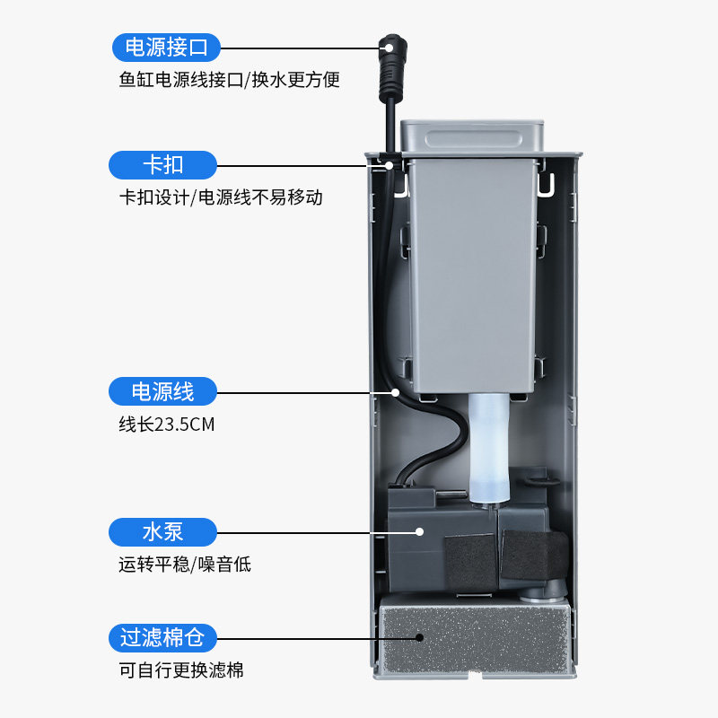 yee壁挂式过滤器鱼缸过滤循环水泵制氧造浪净水三合一静音鱼马桶