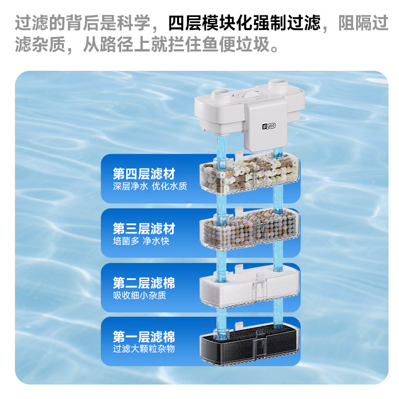 适用于小米智能鱼缸升级水泵多档位调节高流速易拆洗增氧过滤模块