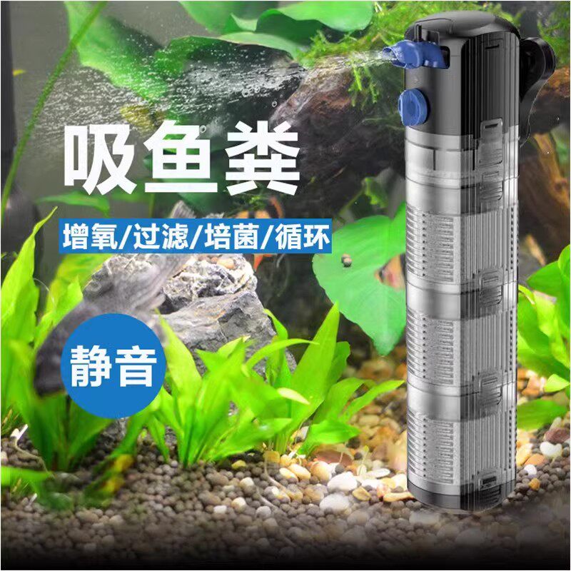 鱼缸过滤制氧一体机循环水泵净水三合一静音氧气泵吸便粪过滤器小