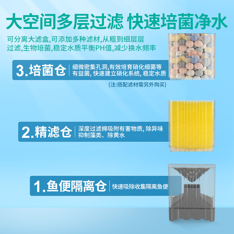 鱼缸过滤器净水循环三合一体机全自动款吸粪鱼马桶小型水泵制氧机