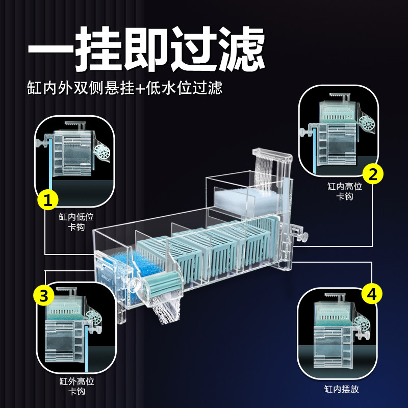 淘干湿分离鱼缸过滤器双层净水循环三合一过滤制氧瀑布壁挂滴流盒