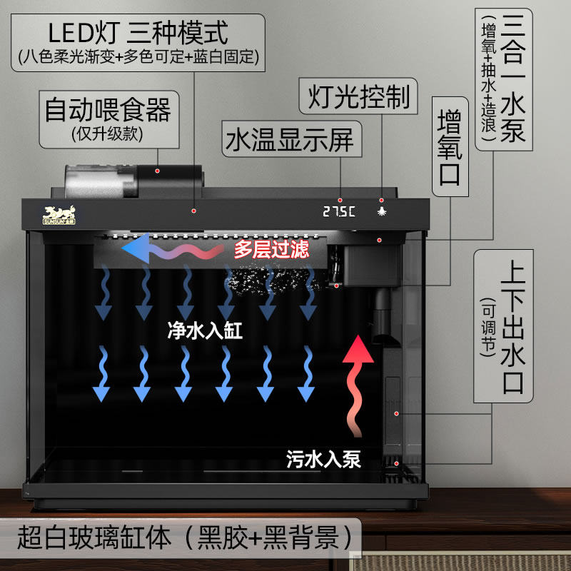 天鱼缸过滤器净水循环三合一小型鱼缸制氧过滤一体机泵壁挂式过滤器