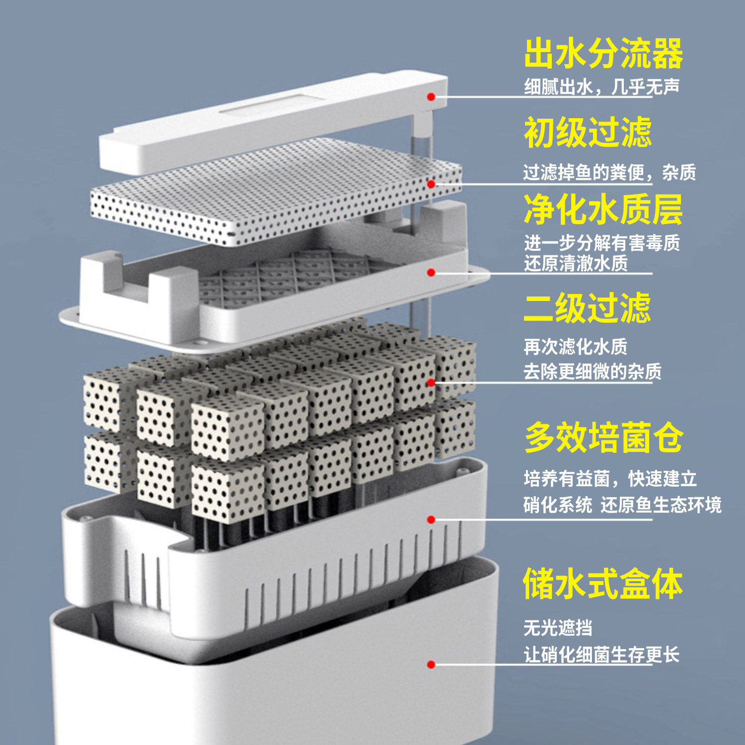 鱼缸过滤器净水循环四合一过滤盒滴流底滤系统整套过滤制氧一体机