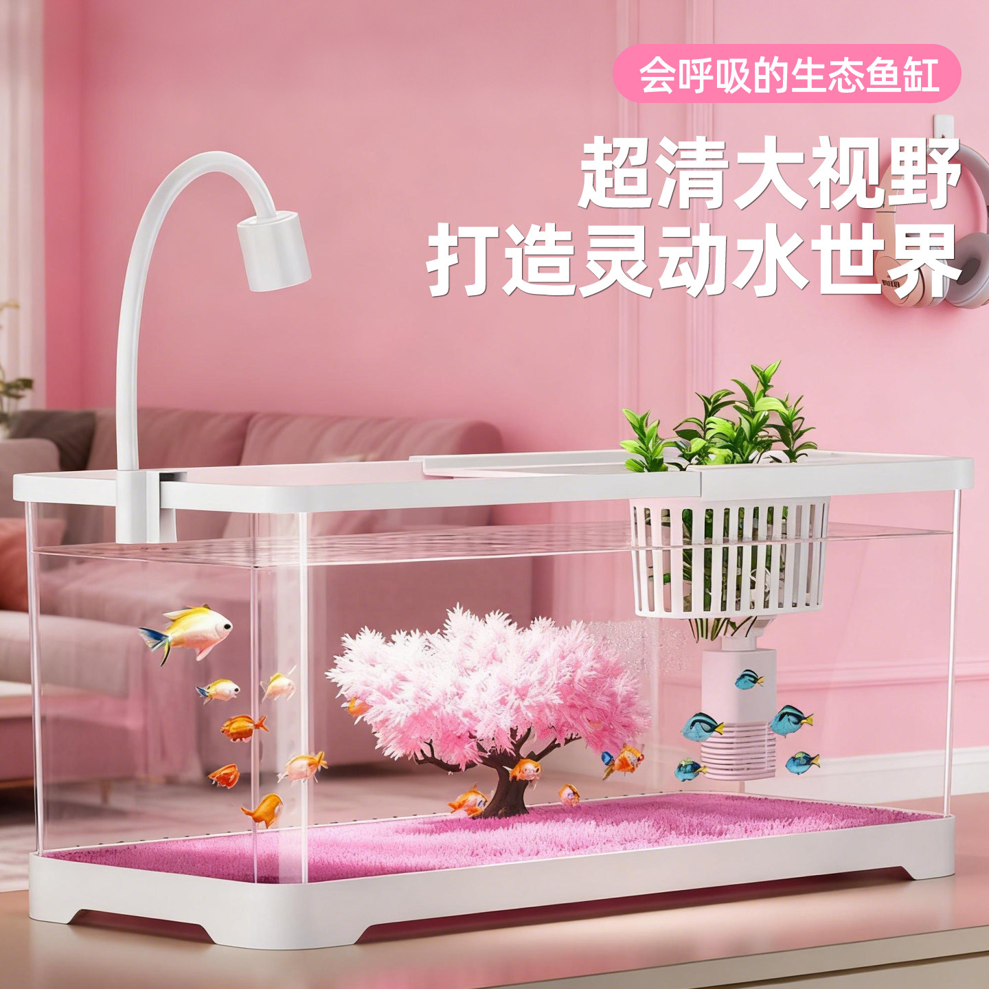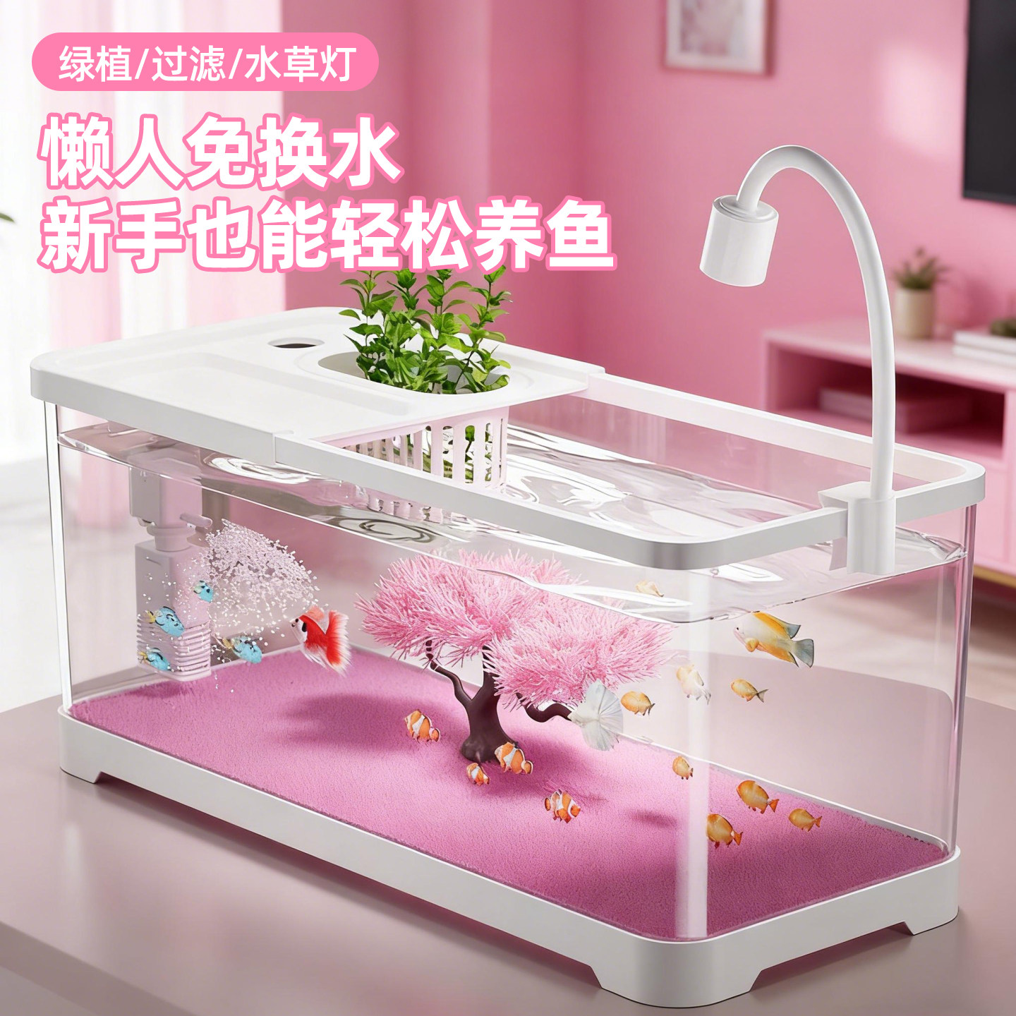 淘免换水金鱼缸2025新款家用过滤制氧一体机客厅造景小型懒人水族箱