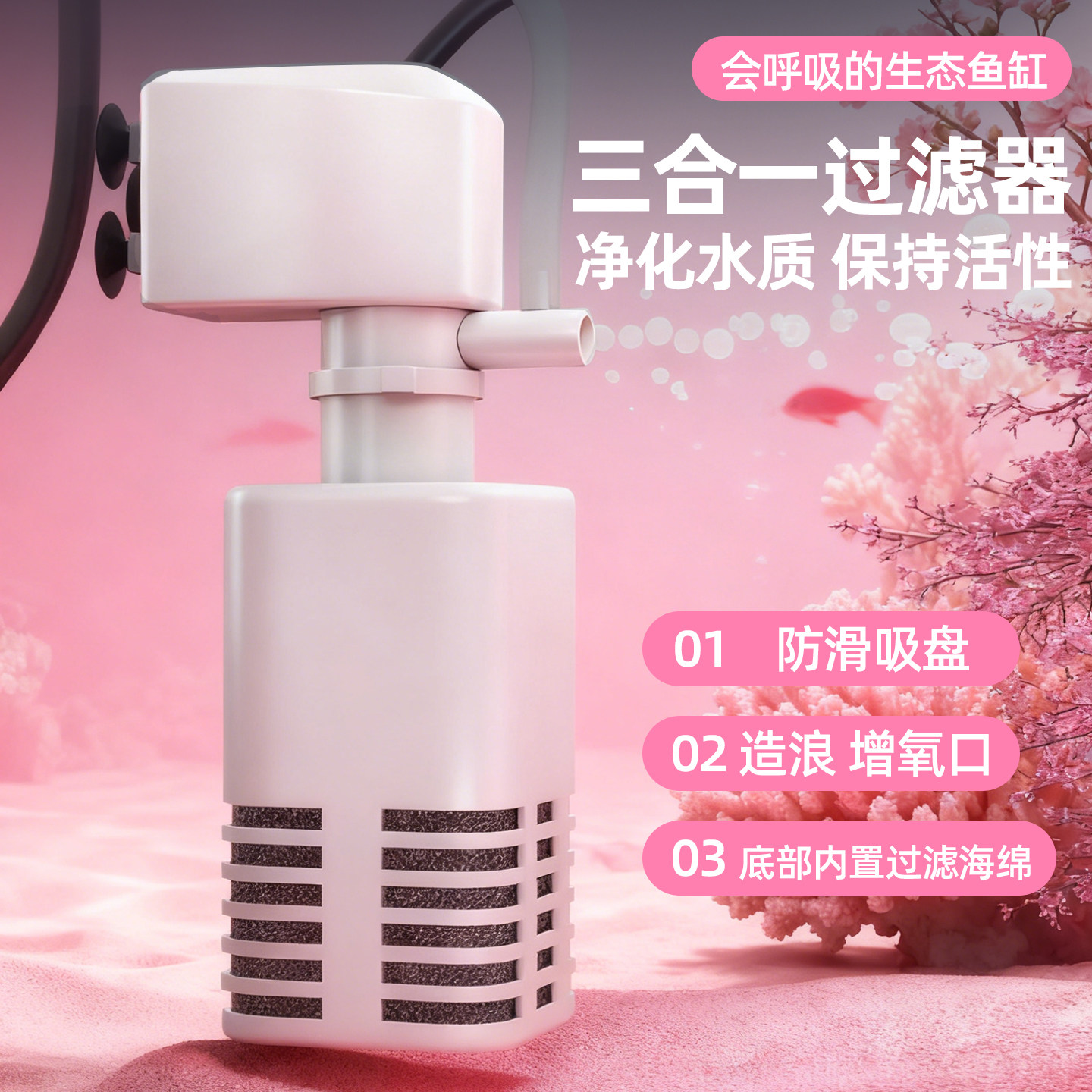 天鱼缸过滤制氧一体机循环水泵净水三合一静音氧气泵吸便粪过滤器小