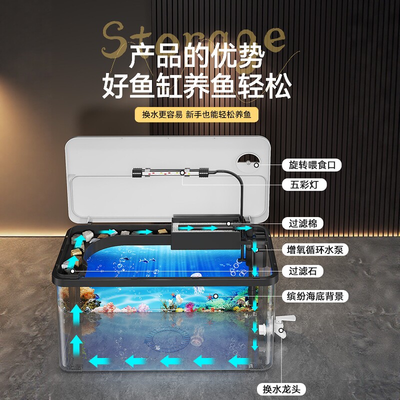 免换水金鱼缸2025新款家用过滤制氧一体机客厅造景小型懒人水族箱