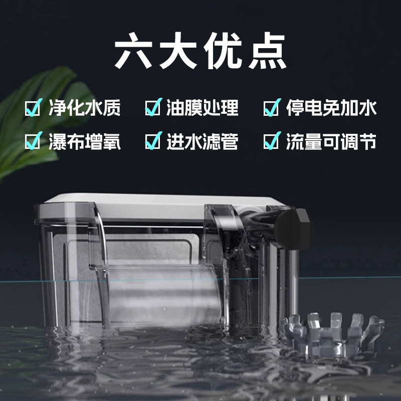 淘小型鱼缸过滤器净水循环三合一制氧过滤一体机壁挂式瀑布式免换水