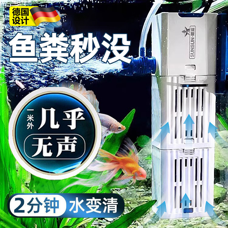 天鱼缸过滤制氧一体机循环水泵净水三合一静音氧气泵吸便粪过滤器小