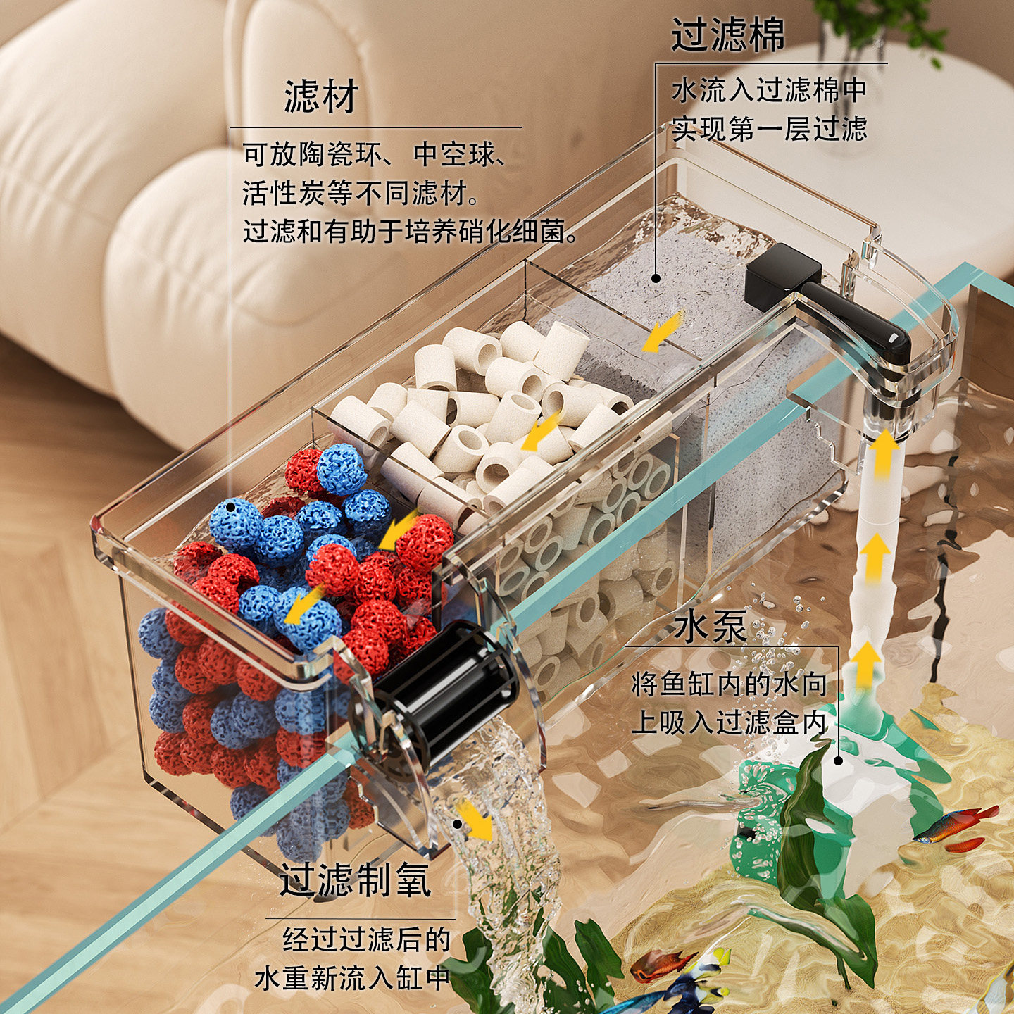 天鱼缸上置过滤器净水循环三合一水泵滴流盒鱼缸制氧一体机上滤盒
