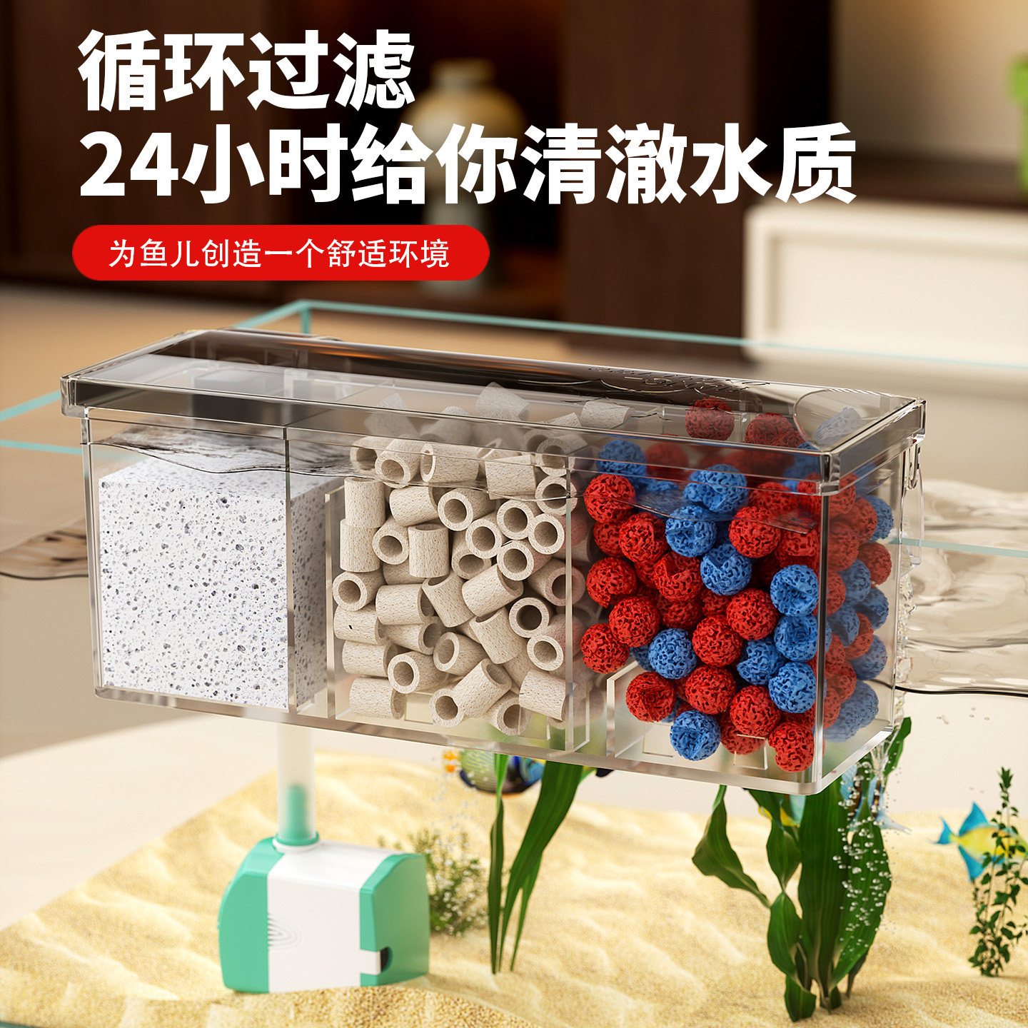 鱼缸上置过滤器净水循环三合一水泵滴流盒鱼缸制氧一体机上滤盒