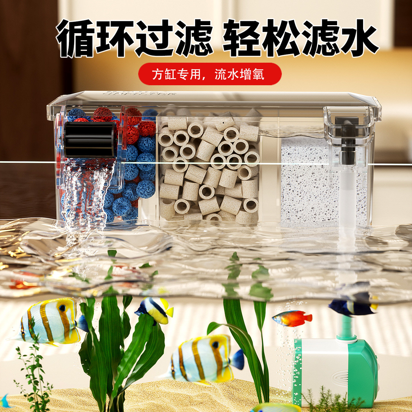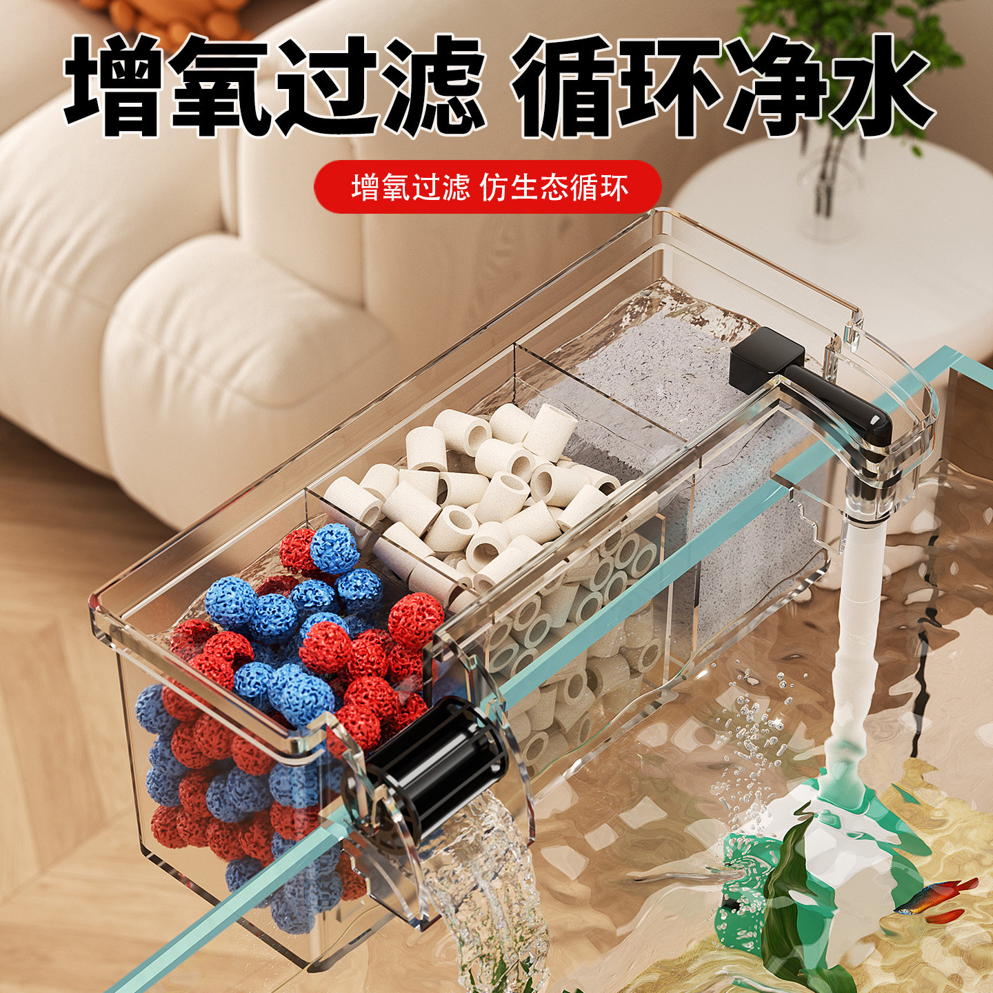 淘小型鱼缸过滤器净水循环三合一制氧过滤一体机壁挂式瀑布式免换水