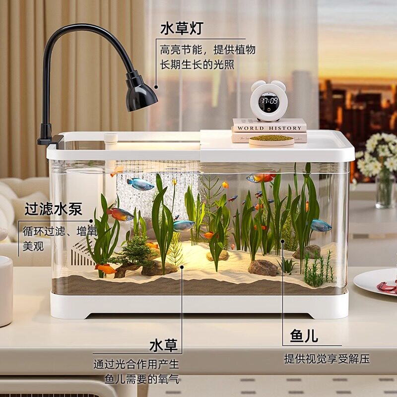 淘免换水金鱼缸2025新款家用过滤制氧一体机客厅造景小型懒人水族箱