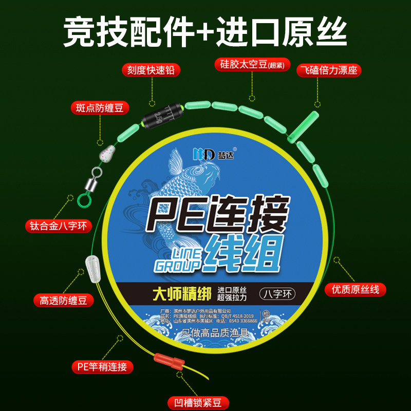 PE加固线组钓鱼线套装是一款专为台钓爱好者设计的高品质渔具成品套装,采用进口高感度PE线作为主线,具备超强拉力、低延展性和优异耐磨性。线组已提前绑制完成,包含八字环、漂座、铅皮座等配件,即拆即用,省去繁琐绑线步骤,提升作钓效率。加固设计有效防止断线跑鱼,适用于多种淡水鱼种垂钓。线号清晰标注,切水快、信号传递灵敏,搭配精细工艺确保耐用性与稳定性。整套产品包装齐全,是新手入门与老手备用的理想选择,正品保障,值得信赖。